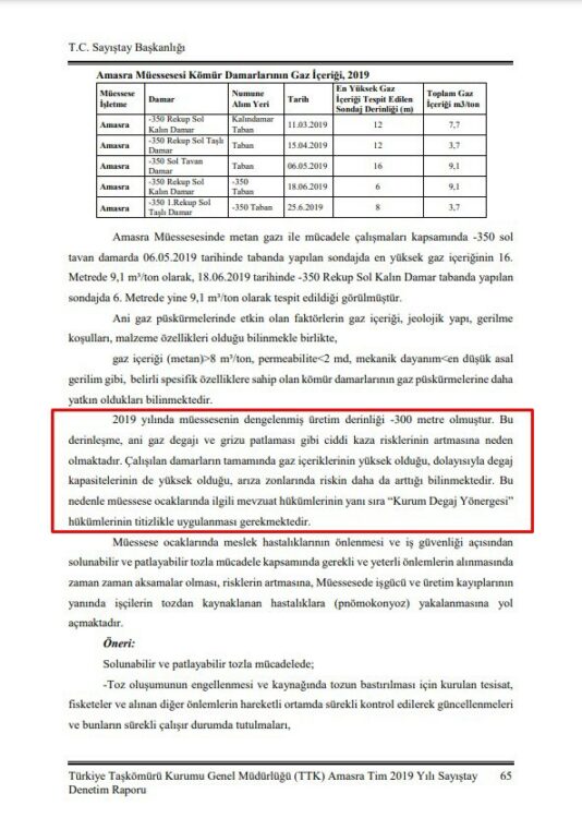 Yavuzyılmaz şu ifadeleri kullandı: “Sayıştay, Bartın Amasra’daki üretim derinliğinin -300 metreye ulaştığını; Çalışılan damarlarda gaz içeriklerinin yüksek olduğunu, ani gaz degajı ve grizu patlama riski artıyor diyor!”