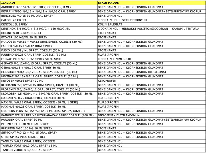 Söz konusu ilaçların isimleri şöyle: