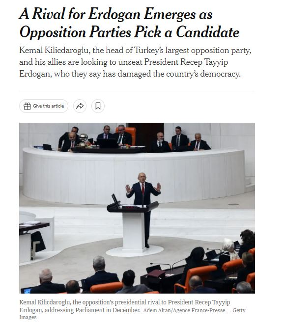 ABD’nin saygın yayınlarından New York Times, “Kılıçdaroğlu ve onun muhalefeti, Erdoğan’ı yenmek için büyük sınavları aşmak durumunda. Erdoğan, geniş ve iyi organize bir parti altyapısına sahip, mesajını yaymak için devletin çeşitli organlarını kullanabilen yetenekli bir siyasetçi” dedi.