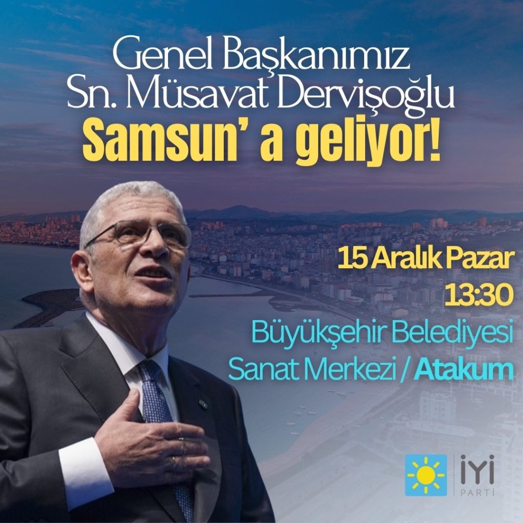 İYİ Parti Genel Başkanı Müsavat Dervişoğlu, toplu üye katılımı ve bir dizi program için yarın Samsun’a geliyor.